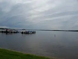 Shawano Lake is a lake situated in Shawano County in northeastern Wisconsin. Shawano Lake is a hard water drainage lake with multiple inlets and one major outlet, the Wolf River. A dam on the Wolf River located in the City of Shawano raises the water levels of Shawano Lake. Shawano Lake is approximately 6,178 acres (25.00 km2), with an average depth of approximately 9 feet (2.7 m) and a maximum depth of approximately 42 feet (13 m). The shoreline length is estimated at 18 miles (29 km).[1] The Towns of Wescott, and Washington, and the Village of Cecil border Shawano Lake.