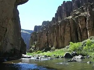 Sheep Creek is a 63-mile (101 km) long[3] tributary of the Bruneau River. Beginning at an elevation of 6,126 feet (1,867 m)[2] east of Owyhee in northern Elko County, Nevada, it flows generally north into Owyhee County, Idaho and the Owyhee Desert, where it is roughly paralleled by Idaho State Highway 51. It then flows to its mouth in the Bruneau – Jarbidge Rivers Wilderness,[4] at an elevation of 3,415 feet (1,041 m).[1] In 2009, 25.6 miles (41.2 km) of the creek were designated as wild by the Omnibus Public Land Management Act, which also created the Bruneau – Jarbidge Rivers Wilderness.[5][6]