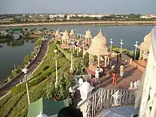 Shegaon has a tourist attraction called "Anand Sagar". The project's budget is ₹300 crore (3 billion rupees).[6][7] Anand Sagar was developed in 2005 by Shri Gajanan Maharaj Mandir Trust on about 140 hectares (350 acres) of land. it is a spiritual and entertainment centre for pilgrims, build around a Dhyan Mandir. There is a 9–11-metre-high (30–35 ft) statue of Swami Vivekananda above a meditation cell at the centre of the water reservoir. It is a replica of Vivekananda Kendra at Kanyakumari. There is an Amphitheatre which seats 3,500 people, used to organize cultural activities, functions, and exhibitions.[8] The water reservoir being developed is anticipated to meet existing and proposed needs of the Sansthan.
