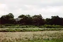 The immediate vicinity of Shingwedzi camp contains some riparian vegetation with large trees, and narrow alluvial plains created by centuries of flooding, flank the river on each side. Here Transvaal mustard trees, weeping boer-bean, sausage tree, Natal mahogany and brack thorn may be found, but further afield the land is dominated by mopane shrub, punctuated by apple-leaf trees.[24] The leafy, large-canopied nyala tree occurs sparsely along the alluvial strips,[14] but more commonly at Pafuri.[25]