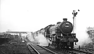 4. The route from Lincoln through Shirebrook North and Clowne South served as a diversionary route. Notably, this led to the occasional appearance of March "Britannia" 4-6-2s on the Liverpool Central-Harwich Parkeston Quay Boat Train (known locally as "The Boaty") trundling through Warsop and Shirebrook North in the early 1960s.[57][58][59]