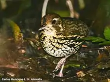 The short-tailed antthrush (Chamaeza campanisona) is a South American species of bird in the family Formicariidae. Its distribution is highly disjunct with populations in the Atlantic Forest in eastern Brazil, eastern Paraguay and northeastern Argentina, isolated highland forests in northeastern Brazil, forests on the tepuis in southern Venezuela, Guyana and northern Brazil, and in forests along the east Andean slope from Venezuela to Bolivia.
