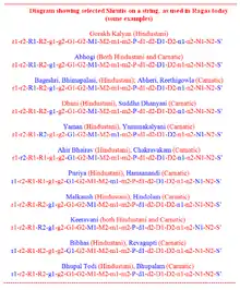 - Small letters denote a komal or flatter version (except m, which is 'tara'),