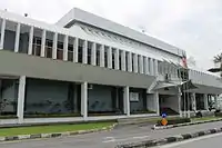 A local council was first set up in Sibu on 31 January 1925 during the era of Brooke administration.[66] It was later upgraded to Sibu Urban District Council (SUDC) in 1952.[67] After 29 years of administration, SUDC was upgraded to Sibu Municipal Council (SMC) on 1 November 1981. SMC administers the town with a jurisdiction area of 129.5 km2 from the banks of Rajang River to Salim road uptown.[55] SUDC and SMC headquarters were housed inside the Sibu Town Hall for 38 years from 1962 to 2000. SMC headquarters was later relocated to Wisma Sanyan in 2001.[68] The chairman of SMC is Tiong Thai King.[55] The outskirts of Sibu such as Sibu Jaya and Selangau District are administered by Sibu Rural District Council (SRDC) covering a total area of 6,000 km2. SRDC headquarters is also located inside the Wisma Sanyan tower.[69]