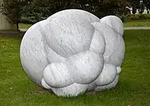 Sibylle Pasche is known for her large-scale outdoor sculptures. She mostly works with stone (Carrara marble, travertine, black Belgian marble). The processes of nature and the poetry of simple shapes in daily life inspire Pasche. She works with well-known structures and shapes, which she develops further according to her own rules of rhythm and proportion. Her objects, weighing several tons, resemble grounded boulders. The choice of the material, its durability and the corresponding notion of longevity has a force that runs counter to the contemporary Zeitgeist of today's fast-paced world.[1] Pasche prefers esthetics to provocation.[2] Traces of time (2011) is a representative piece of Pasche's focal preoccupations of carving the inside.[3]