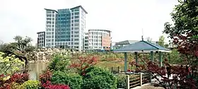 SICNU is located southeast of downtown Chengdu, and is outside Chengdu's 2nd Ring Road. It now has four campuses, the main campus, the Eastern Campus, Chenglong Campus and Shizishan Campus. The campus which is located in Jinjiang (Chinese: 锦江) District is the main campus, and it covers an area of 3,000 mu.[3] Its library is the third largest in Sichuan Province, and it has a collection of bound volumes of 300,000 titles.