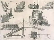 For the first six months and generally throughout the siege there were fired on average a thousand shots a day.[57] It was not until the end of November that the Spaniards had been at work advancing their batteries, forming foundations in the haven by sinking huge baskets of wicker-work filled with sand, and building floating platforms, on which guns were mounted in the "Geule".[58]