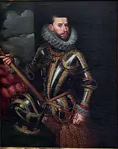 In 1599 the Archduke Albert of Austria and Isabel Clara Eugenia, brother and sister of Philip III, ruled as joint sovereigns of the Netherlands through the will of the dying Philip II.[28] By 1600 Maurice of Nassau was stadtholder and Johan van Oldenbarnevelt was Grand pensionary of the States General of the Netherlands.[11]