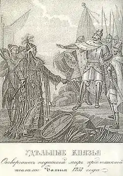 ![]() The Ryazan's prince rejects the Mongols' tribute demand. | |||||||