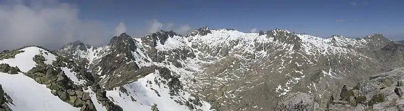 Rises in the south near the North Tietar fault. The northern limit of the horst is structured by a system of faults that run to the north-east, such as the Burguillo fault, and also in an east-west direction, like the Navaluenga fault, along which the Alberche river runs. The highest peaks of this sector are the following: