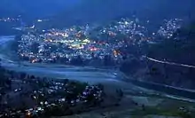 The origin theory of the name Sikkim is that it is a combination of two Limbu words: su, which means "new", and khyim, which means "palace" or "house".[19] The Tibetan name for Sikkim is Drenjong (Wylie-transliteration: 'bras ljongs), which means "valley of rice",[20] while the Bhutias call it Beyul Demazong, which means '"the hidden valley of rice".[21] According to folklore, after establishing Rabdentse as his new capital, Bhutia king Tensung Namgyal built a palace and asked his Limbu Queen to name it. The Lepcha people, the original inhabitants of Sikkim, called it Nye-mae-el, meaning "paradise".[21] In historical Indian literature, Sikkim is known as Indrakil, the garden of the war god Indra.[22]