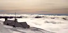 The Silcox Hut is a small rustic mid-mountain lodge located at 6,950 feet (2,120 m) elevation on Mount Hood, Oregon, United States. It is approximately 1,000 feet (300 m) vertical above Timberline Lodge and roughly one mile distance directly up the mountain.