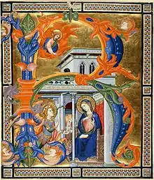 • folio 38: The Nativity and the Annuciation to the Shepherds in an Initial P (Morgan Library & Museum, MS M.653, no. 1 (I.8))[50][51]