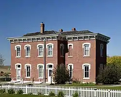The two-story, 13-room, red brick house was built in 1872 by Simon E. Dow (Simeon E. Dow), who in 1869 co-founded Dow City and later became one of its leading businessmen.[2] In 1970, it was bought by the Crawford County Conservation Board to be restored and is now open for public tours.