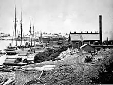 Wilder deserted the town in 1846, moving back to Calhoun County. James Carter of New York bought out Wilder's interest in the town and moved there to oversee his investment. It was only two years after that that Carter sold the town to his brother, Artemas, and Francis B. Stockbridge.[6] Artemas was more innovative than his brother, and very soon after arriving, he and Stockbridge built the first three-masted schooner on Lake Michigan, dubbed the Octavia, to carry lumber from Singapore to Chicago.[7] Carter was bought out by Stockbridge in 1850 and the decade proved to be one of prosperity for Stockbridge and the town,[6] which boasted a population of several hundred people by 1871.