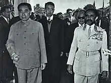 The establishment of modern Sino-African relations began in the late 1950s, when China signed bilateral trade agreements with Algeria, Egypt, Guinea, Somalia, Morocco, and Sudan. Chinese Premier Zhou Enlai made a ten-country tour of Africa between December 1963 and January 1964. Zhou Enlai visited Ghana and established close relations with Kwame Nkrumah, who desired a united Africa.[26] Relations at that time often reflected China's foreign policy in general: China "began to cultivate ties and offer...economic, technical and military support to African countries and liberation movements in an effort to encourage wars of national liberation and revolution as part of an international united front against both superpowers".[27]