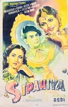 Sipahiya is a 1949 Indian thriller film directed and produced by Aspi Irani. It stars Madhubala[1] and Yakub. The music of the film was composed by C. Ramachandra.[2][3]