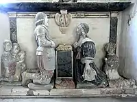 - Susanna Northcote (b.1633), married in 1653, as his 2nd wife, Col. Robert Fortescue (1617-1677), 2nd son of Hugh Fortescue (1593-1663) of Filleigh by his wife Mary Rolle, daughter of Robert Rolle (d.1633) of Heanton Satchville, Petrockstowe.[9] Their only son Robert Fortescue (1633-1633), died an infant, whose mural monument exists in Newton St Cyres Church. Of their three daughters, two died as infants, but the eldest Elizabeth Fortescue (born 1659) survived and married George Horner (1646-1707) of Mells Manor in Somerset, and was the grandmother of Elizabeth Fox, Countess of Ilchester. The daughter from Robert Fortescue's first marriage to Grace Grenville, daughter of Sir Bevil Grenville was Grace Fortescue who married Sir Halswell Tynte, 1st Baronet (1649–1702), MP for Bridgwater 1679–1689.[10] Tynte was a cousin of Grace Halswell, being the son of Jane Halswell (d.1650) (sole heiress of Rev. Hugh Halswell (d.1672) of Halswell), the wife of John Tynte, whose inheritance became the manor of Halswell.[10]