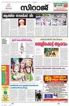Siraj (Malayalam: സിറാജ് ദിനപത്രം, Arabic: جريدة السراج اليومية), a daily newspaper in Malayalam language,[1][2][3][4] It was established in 1984. The newspaper belongs to Thoufeeque Publications. It is publishing from five cities in India Kozhikode, Thiruvananthapuram, Kochi, Kannur and Bengaluru. In gulf Dubai, Oman and Qatar. The head office of the newspaper is located at Kozhikode. The Editor-in-Chief is V.P.M. Faizy Villiappaly. It has eight editions. The Malappuram edition will start soon.