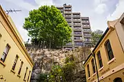 The Sirius building is an apartment complex in The Rocks district of Sydney, New South Wales, Australia. Designed for the Housing Commission of New South Wales in 1978–1979 by commission architect Tao Gofers, the building is a prominent example of Brutalist architecture in Australia. It also has striking repetitive geometries in reaction to the Japanese metabolist architecture movement. Notable for being the only high rise development in The Rocks, Sirius housed 79 apartments with one, two, three or four bedrooms, generally with single storey apartments to two and three storey walk ups.[1] The complex was built to rehouse displaced public tenants after a controversial redevelopment of the Rocks during the 1960s and 70s.