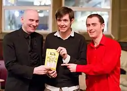 A fact check on the children's book The Giant Book of Fantastic Facts was popular semi-regular segment, until it concluded with a "Best of" edition on 14 July 2011.[18] On 1 April 2013, an entire episode consisted of fictional stories including a parody of Ghost Busters, a story about the "Mersey Book of Monsters" and one about the "Paranormal Investigation Society Scotland (PISS)",[19] which was revealed in "Episode #095.5 – the Confession".[20] The hosts managed to mislead many skeptics who couldn't tell the entire show was a hoax. Tim Farley was among the few who doubted only particular segments, and after contacting Marsh, who admitted they had made up all news items but requested it be kept a secret, turned it into a challenge for the listeners of Virtual Skeptics to find out which skeptical podcast's early April episode was a hoax.[21]