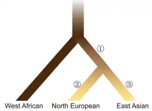 Population and admixture studies suggest a three-way model for the evolution of human skin color, with dark skin evolving in early hominids in Africa and light skin evolving partly separately at least two times after modern humans had expanded out of Africa.[20][24][25][26][27][28]