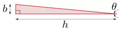 In trigonometry, a skinny triangle is a triangle whose height is much greater than its base. The solution of such triangles can be greatly simplified by using the approximation that the sine of a small angle is equal to that angle in radians. The solution is particularly simple for skinny triangles that are also isosceles or right triangles: in these cases the need for trigonometric functions or tables can be entirely dispensed with.