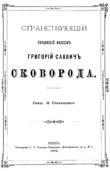 He received his education at the Kiev Mogila Academy in Kiev (now Kyiv, Ukraine). Haunted by worldly and spiritual powers, the philosopher led a life of an itinerant thinker-beggar. In his tracts and dialogs, biblical problems overlap with those examined earlier by Plato and the Stoics. Skovoroda's first book was issued after his death in 1798 in Saint Petersburg. Skovoroda's complete works were published for the first time in Saint Petersburg in 1861. Before this edition many of his works existed only in manuscript form.