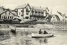 Much of the old fishing village has survived. Rydhave, now the official residence of the United States' Ambassador to Denmark, is an example of the country houses that were built in the area in the late 19th and early 20th century. It was built in 1885 for E. Schackenborg, the owner of a brickyard.[3] The 22-room Skovshoved Hotel has been listed as one of the world's 50 top hotels by Condé Nast in 2003.[4]