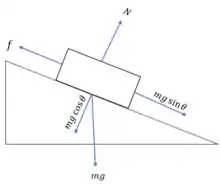 A simple free body diagram can be used to understand the relationship between the angle of repose and the stability of the material on the slope. For the heaped material to collapse, the frictional forces must be equivalent to the horizontal component of the gravitational force , where is the mass of the material, is the gravitational acceleration and is the slope angle: