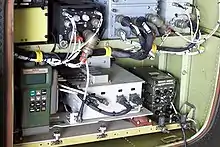 The TESS Aircraft System consists of an “A” kit that becomes part of the aircraft, and a “B” kit that is added to the aircraft for training exercises.[11] The “A” kit includes the SMODIM Tray Assembly, modified software in the weapons display and systems processors, with cable connection provisions. The “B” kit includes the SMODIM, Eye-Safe Laser Range Finder/Designator (ESLRF/D), TESS Gun Control Unit (TGCU), Aircraft Internal Boresight Subassembly (AIBS), TESS Training Missile (TTM) with Flash Weapon Effects Signature Simulator (FlashWESS), GPS and telemetry antennas.