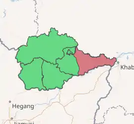 Smidovichsky District (Russian: Смидо́вичский райо́н) is an administrative[1] and municipal[6] district (raion), one of the five in the Jewish Autonomous Oblast, Russia. It is located in the east of the autonomous oblast and borders Khabarovsk Krai (via the Tunguska River) in the north and east, China (via the Amur River) in the south, and Birobidzhansky District in the west. The area of the district is 5,900 square kilometers (2,300 sq mi).[2] Its administrative center is the urban locality (a settlement) of Smidovich.[1] As of the 2010 Census, the total population of the district was 28,165, with the population of Smidovich accounting for 18.2% of that number.[3]