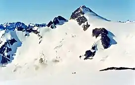 Snowfield Peak (8,351 feet (2,545 m)) is in North Cascades National Park in the U.S. state of Washington.[3] Located in the south unit of the park, Snowfield Peak is .70 mi (1.13 km) east of the summit known as Horsemans Pack and the Neve Glacier descends from the north slopes of the mountain.
