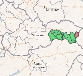 Sobrance District (Slovak: okres Sobrance) is a district in the Košice Region of eastern Slovakia.[1] It is the easternmost district of the Košice Region. Sobrance district borders Michalovce District, Prešov Region and Ukraine. It lies mainly on a lowlands of Eastern Slovak Lowland. Sobrance district was established in 1996. The administrative, cultural end economy center is Sobrance town.