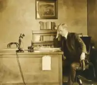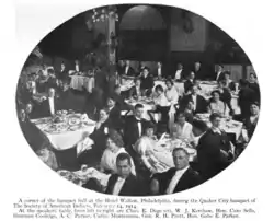 On February 14, 1914, in the flush of enthusiasm following the Denver conference, the Executive Committee held its meeting in Philadelphia, Pennsylvania, in a more elaborate fashion than usual the session and included a banquet.[71] In October 1914, Dennison Wheelock hosted the Society's annual October convention in Madison, Wisconsin.[72] In December 1914, the Society met in Washington, D.C. and received a first-class reception from the federal government. Commissioner Cato Sells welcomed them to the nation's capital where they toured the Bureau of Indian Affairs, and visited the White House to meet with President Woodrow Wilson. After shaking hands with the president, Wheelock presented the Society's petition in support of the Carter Bill and Stephens Bill.[73] Wheelock spoke, "We believe that you feel, with the progressive members of your race, that it is anomalous permanently to conserve within the nation groups of people whose civic condition by legislation is different from the normal standard of American life." While President Wilson was impressed, both bills garnered little political traction in Washington. Arthur C. Parker noted the political aversion to Indian rights legislation when he observed that "one senator wrote me that there was a great deal of prejudice in considering Indian matters and reluctance to take them up."[74]