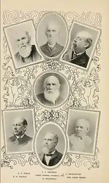 The Society of Montana Pioneers was founded on September 11, 1884 in Helena, Montana, to honor and document the histories of Montana pioneers who were resident in the territory at the time it became a Montana Territory, May 26, 1864.[1] In 1909, the society changed its membership rules to admit pioneers who were resident the territory prior to December 31, 1868.[2] In 1899, the society boasted 1536 active members out of a one time total of 1808.[3] The society did not consider individuals who were assigned to Montana on military duties, individuals who were deemed outlaws such as Henry Plummer of Bannack, or Indians as eligible for membership in the society.[4]