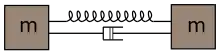 In this approach, the body is modeled as a set of point masses (nodes) connected by ideal weightless elastic springs obeying some variant of Hooke's law. The nodes may either derive from the edges of a two-dimensional polygonal mesh representation of the surface of the object, or from a three-dimensional network of nodes and edges modeling the internal structure of the object (or even a one-dimensional system of links, if for example a rope or hair strand is being simulated). Additional springs between nodes can be added, or the force law of the springs modified, to achieve desired effects. Applying Newton's second law to the point masses including the forces applied by the springs and any external forces (due to contact, gravity, air resistance, wind, and so on) gives a system of differential equations for the motion of the nodes, which is solved by standard numerical schemes for solving ODEs.[9] Rendering of a three-dimensional mass-spring lattice is often done using free-form deformation,[10] in which the rendered mesh is embedded in the lattice and distorted to conform to the shape of the lattice as it evolves. Assuming all point masses equal to zero one can obtain the Stretched grid method aimed at several engineering problems solution relative to the elastic grid behavior. These are sometimes known as mass-spring-damper models. In pressurized soft bodies[11] spring-mass model is combined with a pressure force based on the ideal gas law.