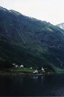 Sogn is a traditional district in Western Norway (Vestlandet). It is located in the county of Vestland, surrounding the Sognefjord, the largest/longest fjord in Norway. The district of Sogn consists of the municipalities of Aurland, Balestrand, Hyllestad, Høyanger, Gulen, Leikanger, Luster, Lærdal, Sogndal, Solund, Vik, and Årdal. The district covers 10,675 square kilometres (4,122 sq mi) and contains about 35% of the county's population. The largest urban area in Sogn is the village of Sogndalsfjøra (in Sogndal municipality), with 3,455 residents. The second largest urban area is the village Øvre Årdal (in Årdal municipality), with 3,397 people (this village used to be the largest, but recently it was passed by Sogndalsfjøra).[2][3]
