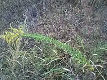 Solidago, commonly called goldenrods, is a genus of about 100[1] to 120[2] species of flowering plants in the aster family, Asteraceae. Most are herbaceous perennial species found in open areas such as meadows, prairies, and savannas. They are mostly native to North America, including Mexico; a few species are native to South America and Eurasia.[1] Some American species have also been introduced into Europe and other parts of the world.