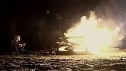 ![]() Kara Thrace on Earth, burning the found body on a pyre. | |