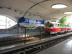 Sonyachna (Ukrainian: Сонячна; Russian: Солнечная, romanized: Solnyechnaya) is a station on the Kryvyi Rih Metrotram. It opened on 26 December 1986 as part of the first stage of the system.