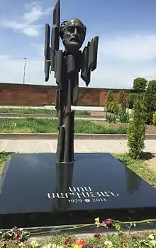 In October 1991, a month after Armenia's independence from the Soviet Union, Sargsyan took part in the first presidential election in independent Armenia. He was nominated by the Armenian Revolutionary Federation.[5] In 1991 he established the Hamazgayin (Pan-National) Theater,[6] which he headed until his death.[4][7] From 1997 to 2006 he was the rector of the Yerevan Cinema and Theatre Institute.[8] Sargsyan died on 26 September 2013 in Yerevan.[2] Sargsyan's funeral was held on 29 September in attendance of Armenia's President Serzh Sargsyan and thousands of people. He was buried at the Komitas Pantheon.[9]