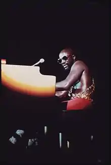 By the 1970s, African-American popular musicians had drawn from the conceptual album-oriented approach of the then-burgeoning progressive rock development. This progressive-soul development inspired a newfound sophisticated musicality and ambitious lyricism in black pop.[52] Among these musicians were Sly Stone, Stevie Wonder, Marvin Gaye, Curtis Mayfield, and George Clinton.[53] In discussing the progressive soul of the 1970s, Martin cites this period's albums from Wonder (Talking Book, Innervisions, Songs in the Key of Life), War (All Day Music, The World Is a Ghetto, War Live), and the Isley Brothers (3 + 3).[54] Isaac Hayes's 1969 recording of "Walk on By" is considered a "classic" of prog-soul, according to City Pages journalist Jay Boller.[55] Later prog-soul music includes recordings by Prince,[56] Peter Gabriel,[57] Meshell Ndegeocello, Joi,[58] Bilal, Dwele, Anthony David,[59] Janelle Monáe,[60] and the Soulquarians, an experimental black-music collective active during the late 1990s and early 2000s.[61]