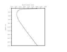 - a plot of the speed of sound in the ocean as a function of depth, where the vertical axis corresponds to the depth and the horizontal axis corresponds to the sound speed. By convention, the horizontal axis is placed at the top of the plot, and the vertical axis is labeled with values which increase from top to bottom, thus reproducing visually the ocean from its surface downward.