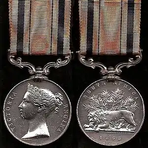The South Africa Medal (1853) was awarded to surviving[2] participants in one or more of three campaigns in the eastern Cape of Good Hope: