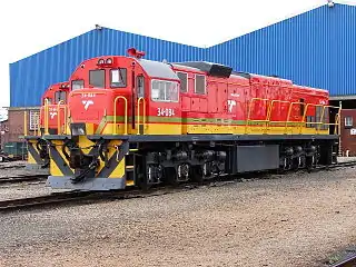 The Class 34-000 type GE U26C diesel-electric locomotive of the South African Railways (SAR) was designed by General Electric (GE). The first three locomotives were built by GE and imported, numbered in the range from 34-001 to 34-003, while the remainder were built by the South African General Electric-Dorman Long Locomotive Group (SA GE-DL, later Dorbyl) and numbered in the range from 34-004 to 34-125. The 125 locomotives entered service between July 1971 and March 1973.[1][2][3]