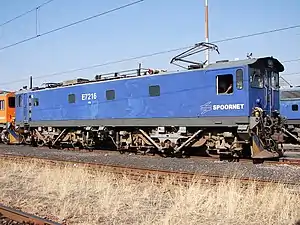 Between 1983 and 1984, the South African Railways placed sixty Class 7E3, Series 1 electric locomotives with a Co-Co wheel arrangement in mainline service. Beginning in 2001, sixteen of these dual cab locomotives were rebuilt to single cab locomotives and reclassified to Class 7E4.[1][2][3]
