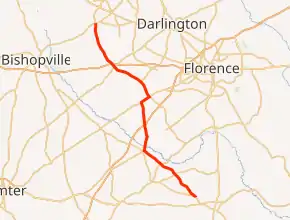 | Timmonsville | 20.930 | 33.684 | Northern end of US 76 concurrency | ||