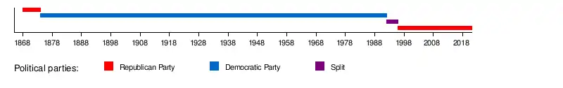 Below is a chart of party control in the South Carolina General Assembly since 1868.