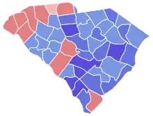 ![]() Red counties were won by Haley and blue counties were won by Sheheen |
